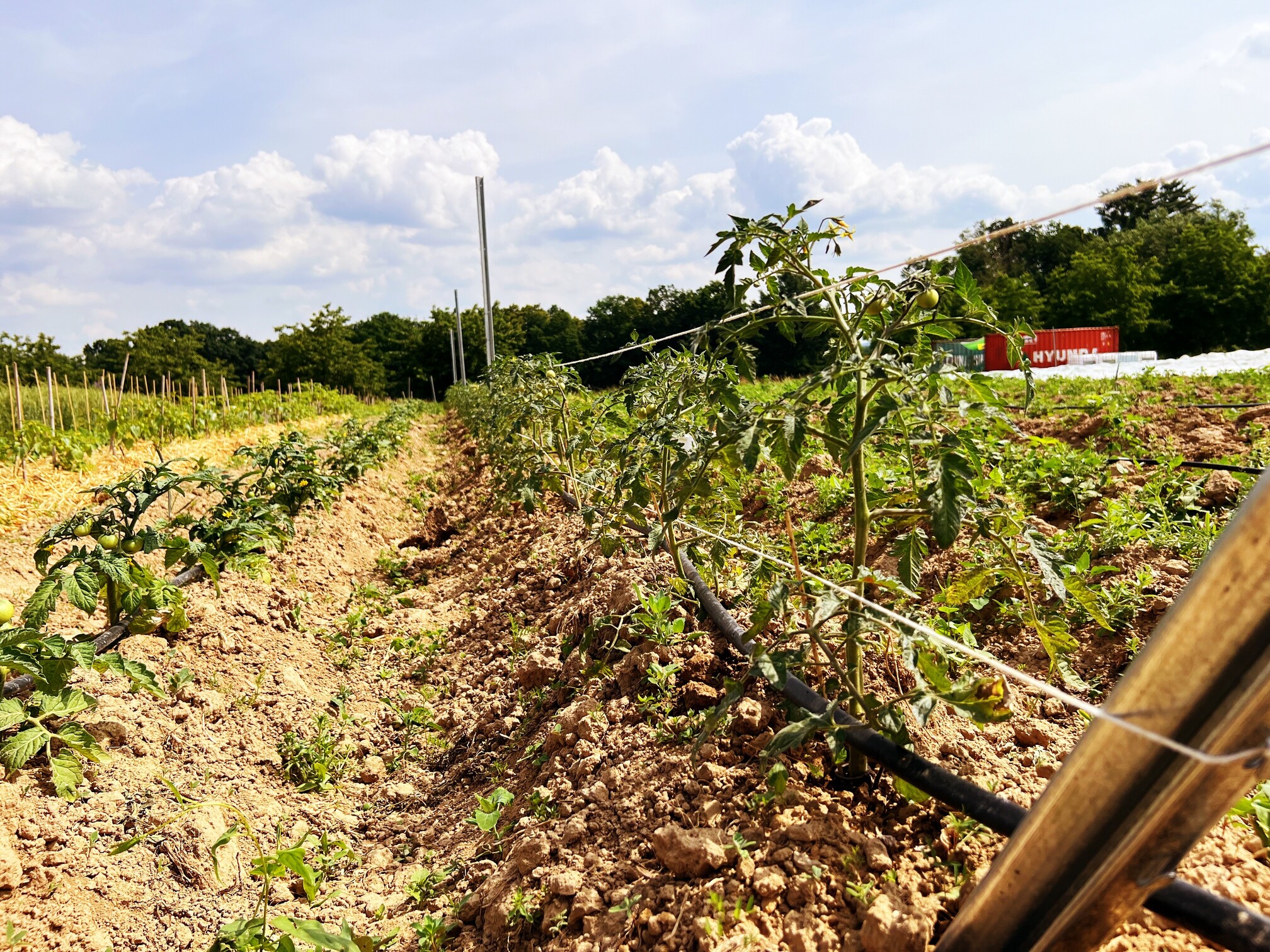 "Bei 31 Grad hätte es doch etwas mehr Sonnenchreme für mich sein dürfen, aber die Tomatenpflanzen sehen trotz der hohen Temperaturen gut aus.