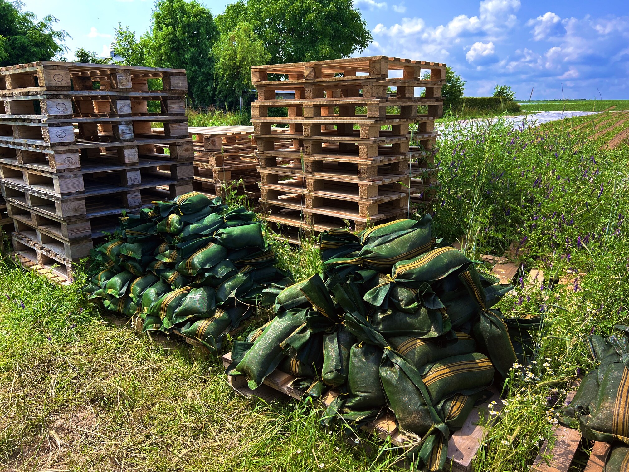 Gefreut habe ich mich übrigens über die befüllten Sandsäcke. Es gibt noch reichlich leere Säcke und Sand zum Befüllen. Liebe Solawi-Mitglieder, auch dabei kann noch mit angepackt werden."