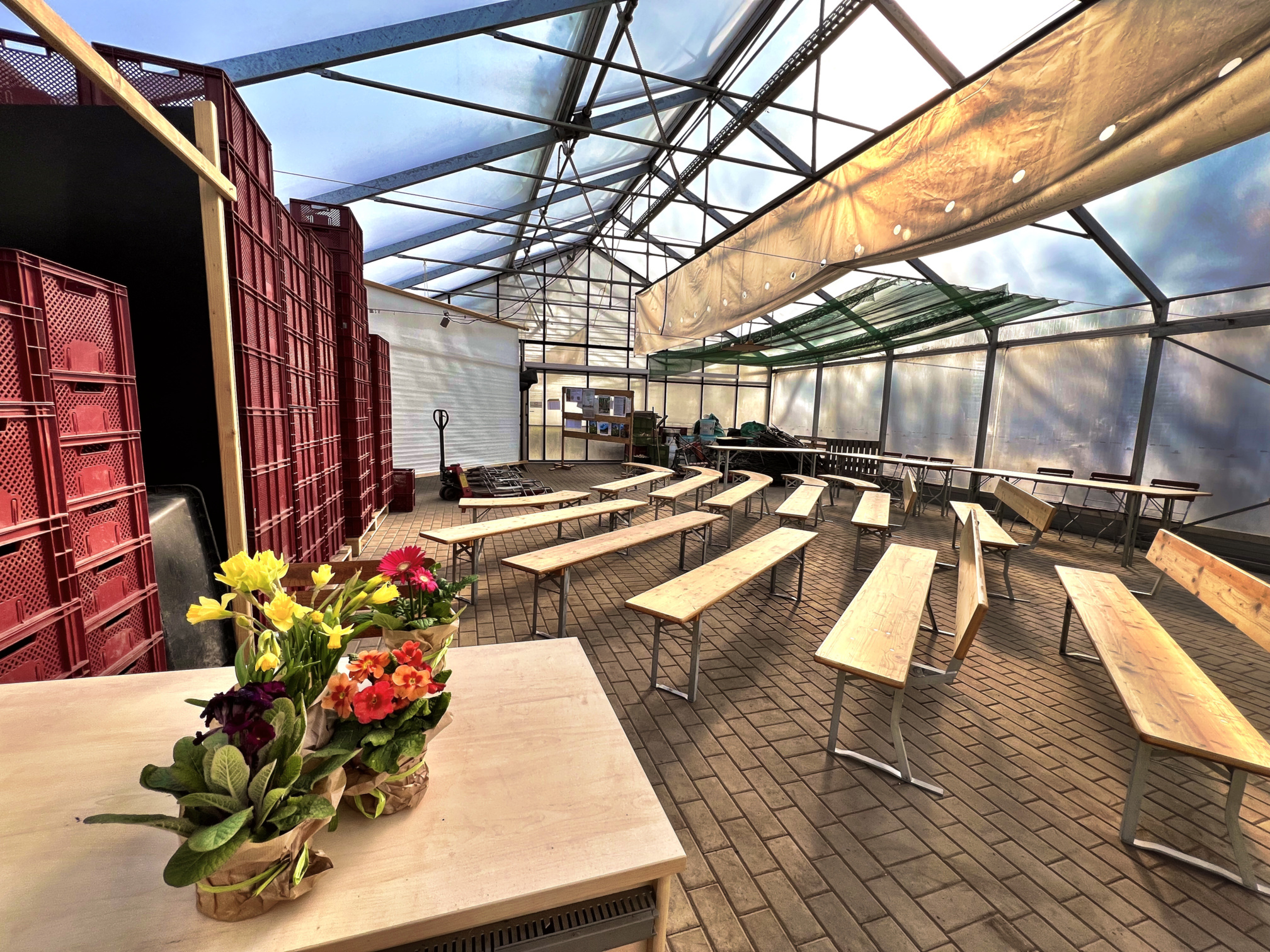 Dank der guten Vorarbeit des Gartenbauteams – insbesondere beim Aufräumen des Gewächshauses – konnten die fleißigen Helfer am Freitag schon das Meiste vorbereiten. So blieb am Samstagmorgen nur noch Feinschliff und unser Fest konnte beginnen!