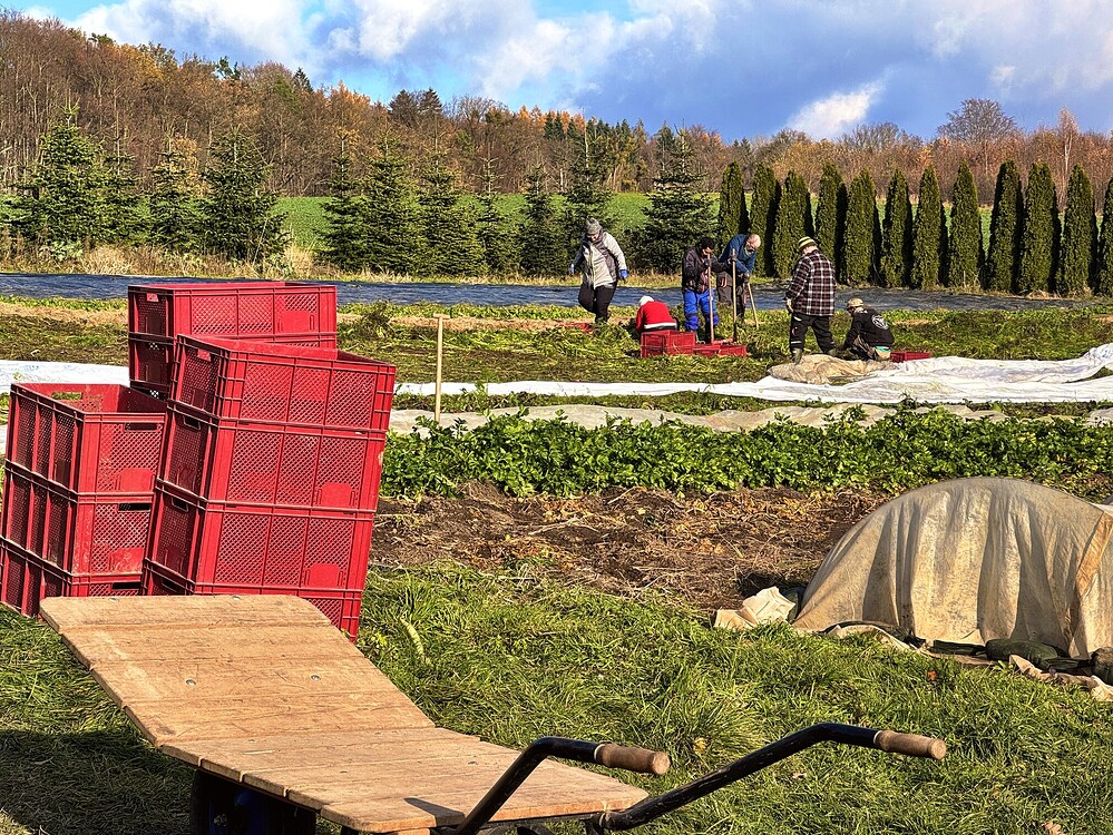 Rotkohl und Weißkohl wurden bereits am Freitag vom gesamten Gartenbauteam bis spät in die Dunkelheit gerettet. Am Samstag dann: Sortieren, putzen, in den Lagerkeller bringen.